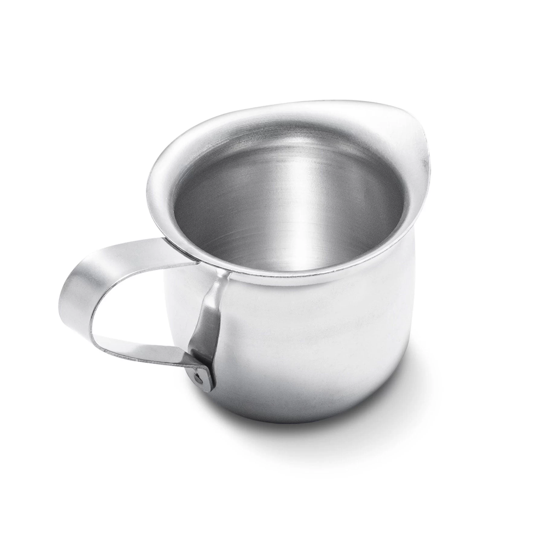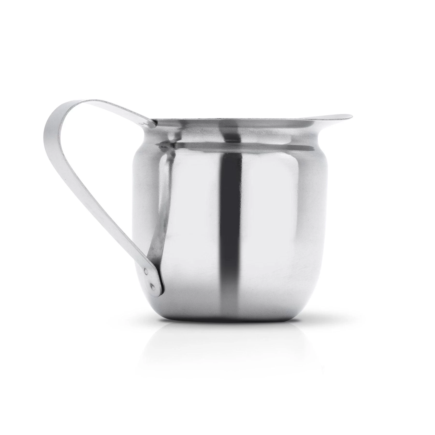 This 8oz brew pitcher is an industry-standard for espresso brew receptacles and a great durable alternative to glass. A best-seller, this 8-ounce bell creamer measures 3 inches high and offers a nice weight & handle for controlled pours.