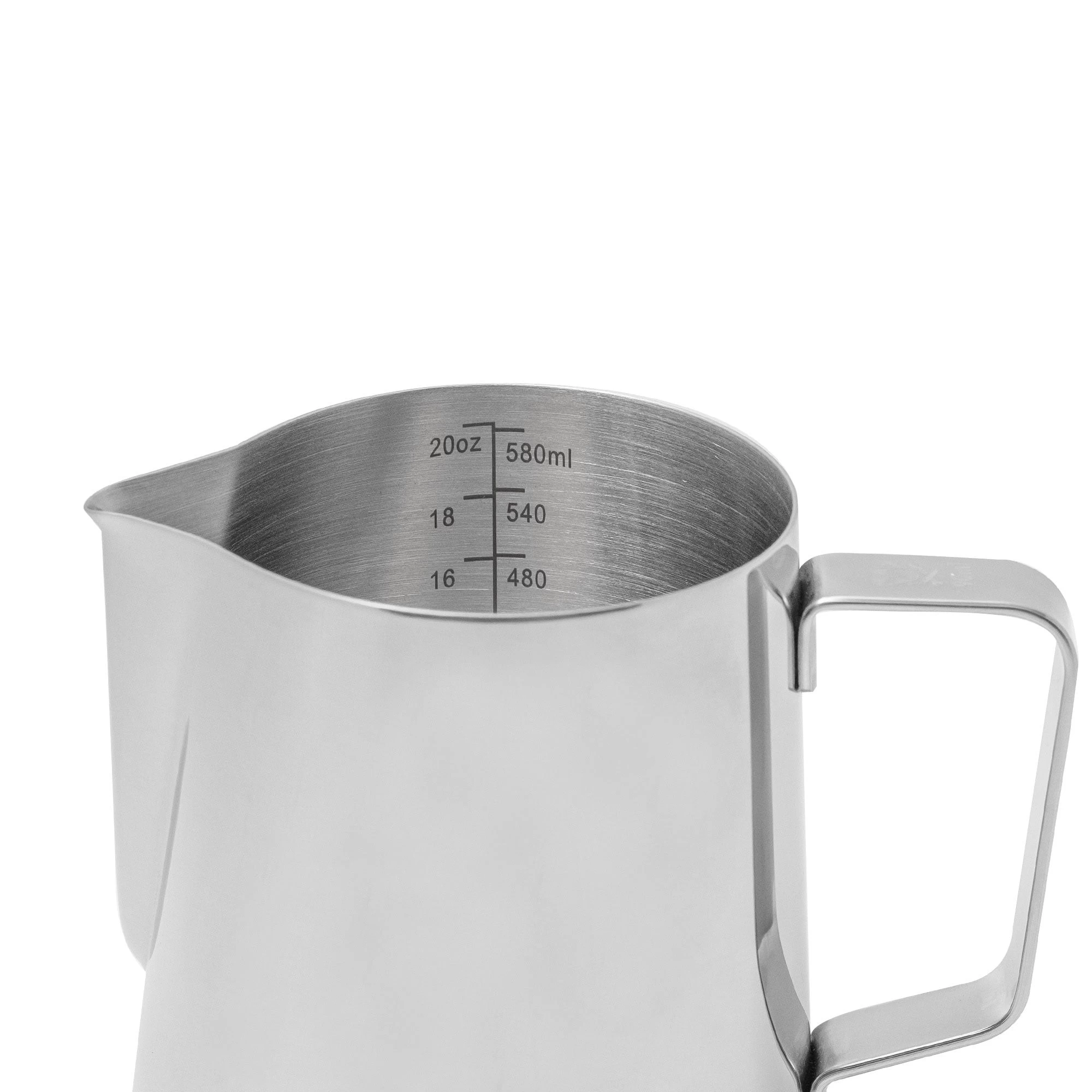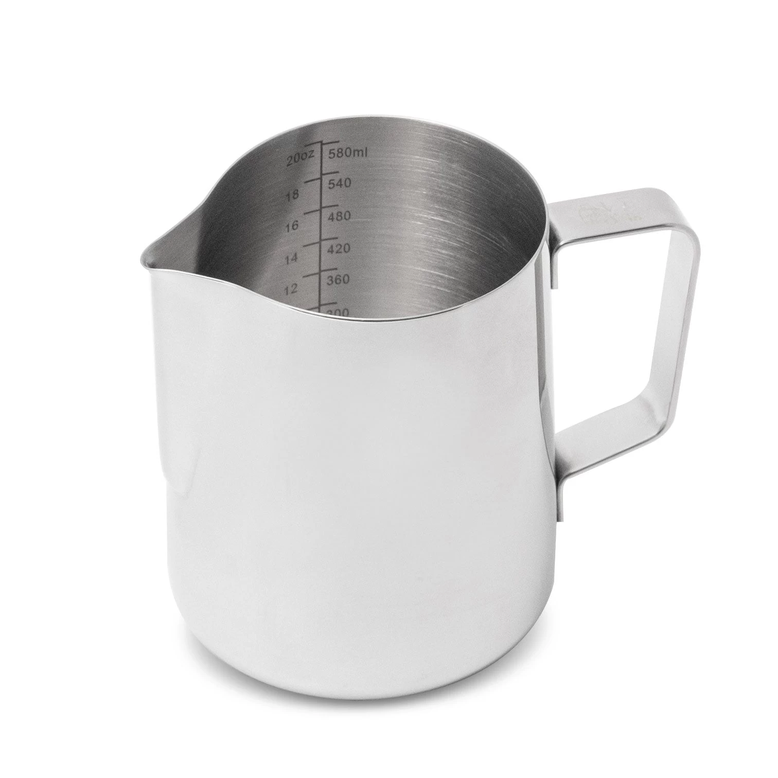 - 20-ounce silver frothing pitcher.