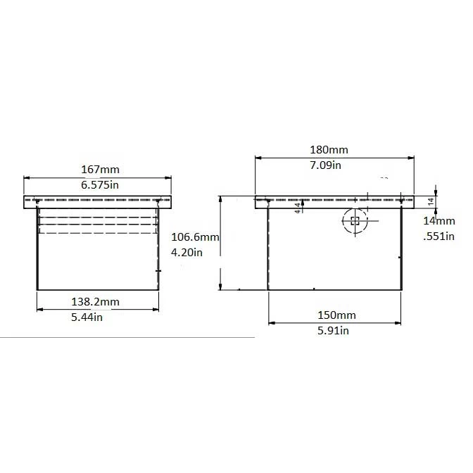 - Knock Chute Inner Dimensions: 6″ x 5.5″ x 4″ with 1/2″ flange