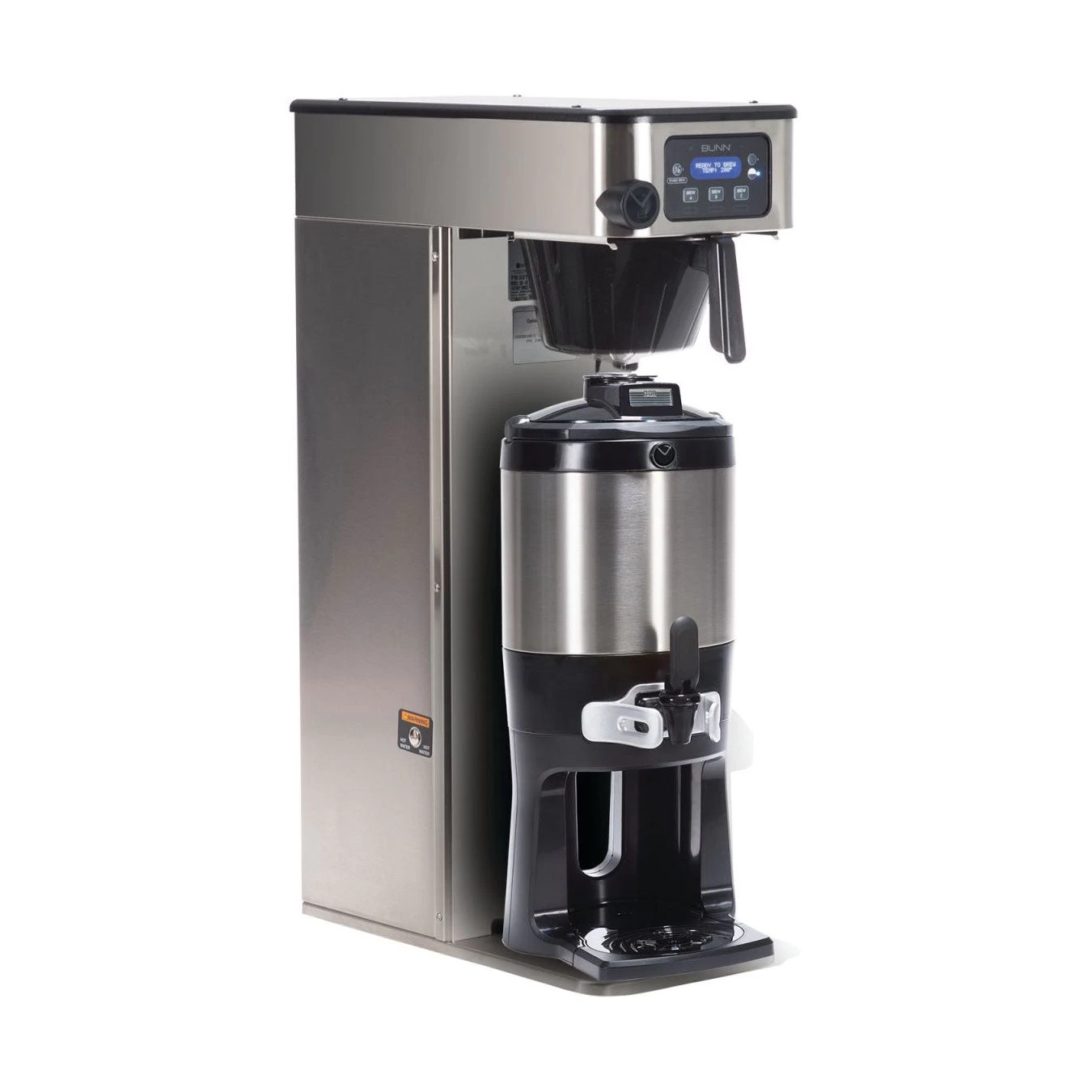- Electronic funnel lock prevents removal of each brew funnel until drip-through is complete.
