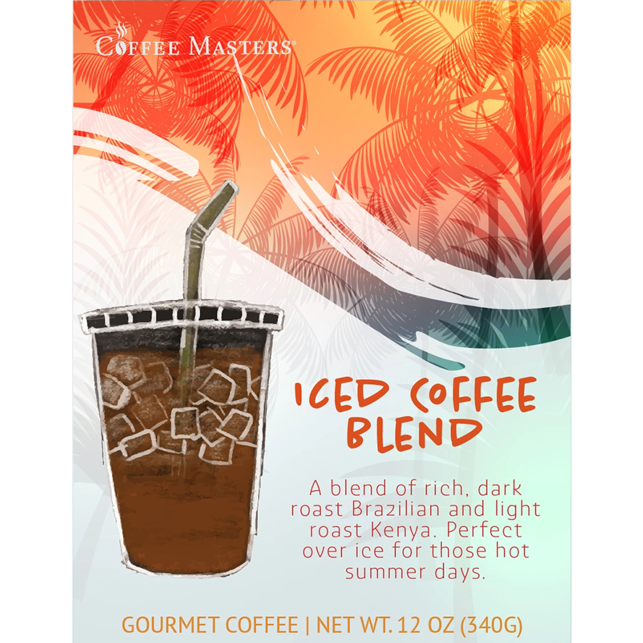 Our unflavored Iced Coffee Blend in a white valve bag with a Summer themed label. Specially formulated to be served with ice, this blend of rich, dark roast Brazilian and a light roast Kenya is meant for those hot summer days. Smooth, acidic and delightful.